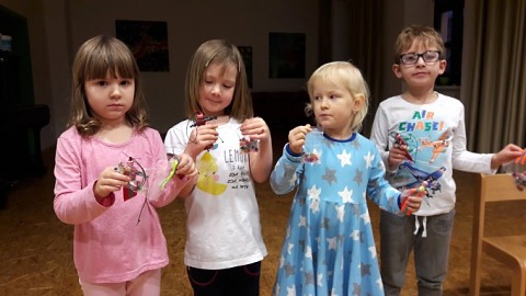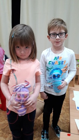 Dovolila jsem dětem potvůrky vyvětrat proběhnutím sálkem a některé potvůrky nám dokonce létaly... :-) Udělalo mi radost, že některé děti hned po kroužku své výrobky věnovaly rodičům.