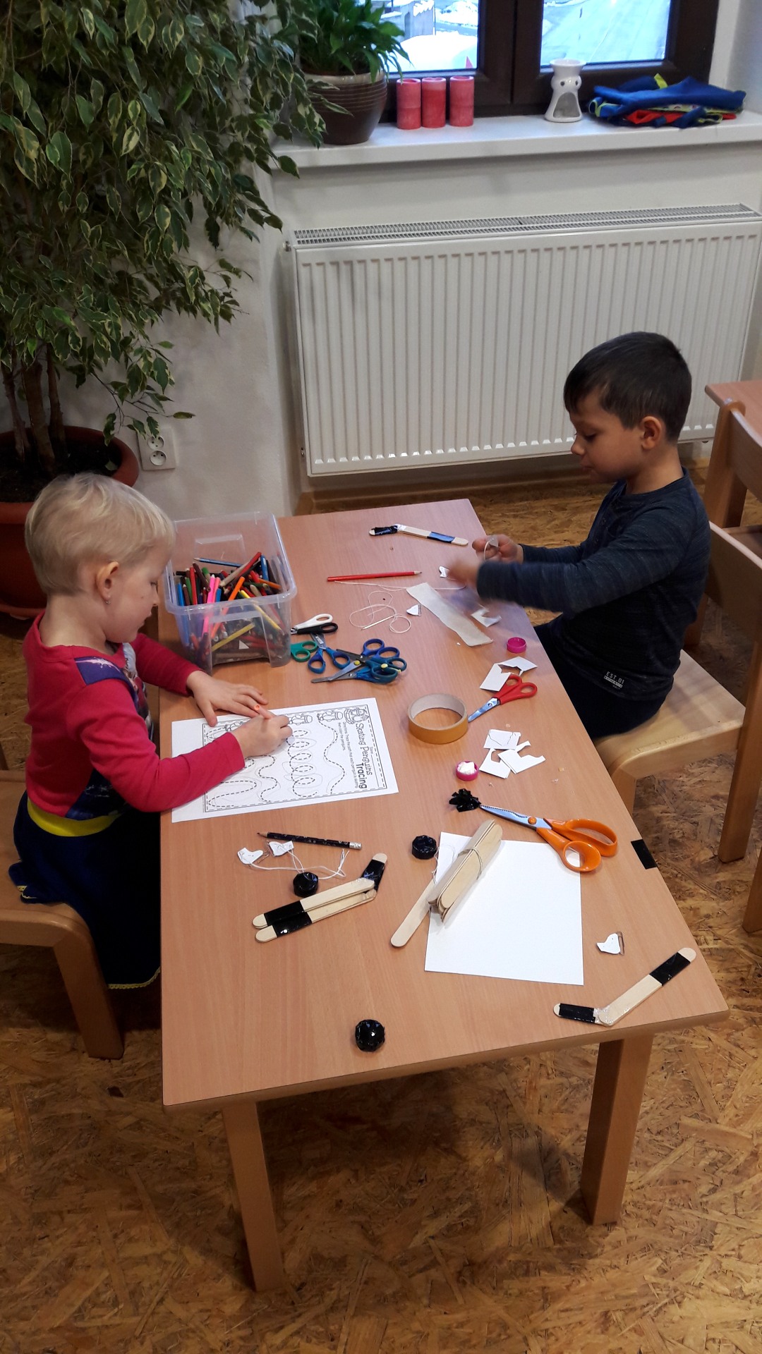 Připravila jsem dětem polotovary některých částí a společně jsme je dozdobili a zkompletovali v opravdovou a funkční marionetu.